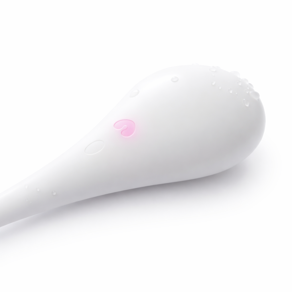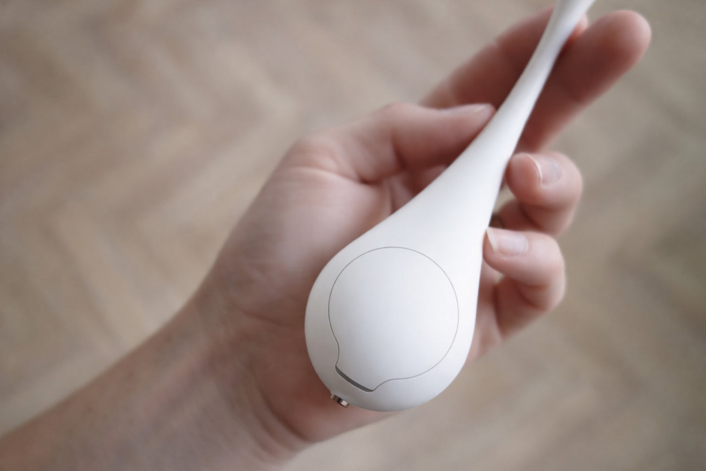 The thermometer is a highly intimate device, the user comes into contact with it in the very first moments after waking. The design reflects this context: simple, calm, and organic. In our concepts and prototypes, we considered using medical-grade silicone to make the device flexible, pleasant to the touch, and waterproof. It is currently manufactured from high-quality, tactile plastic.