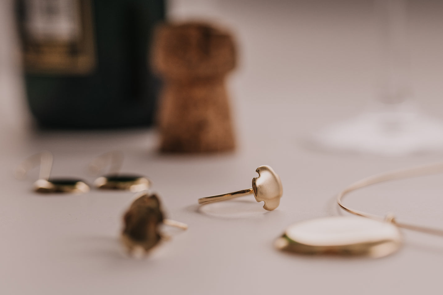 The Champagne jewellery collection was created for the Czech design jewellery brand MOOYYY and marks my first exploration of jewellery design. Designing my own jewellery had always been a small, private wish, so when MOOYYY approached me to design an entire collection, I was happy to say yes. The development of the Champagne collection took one year.