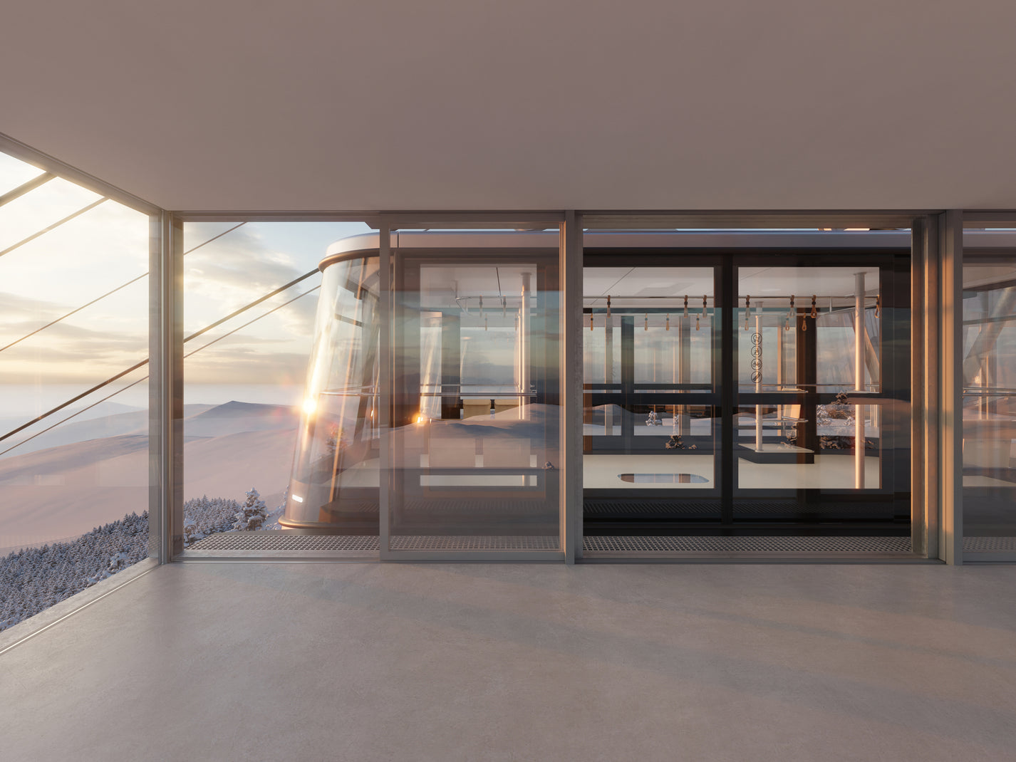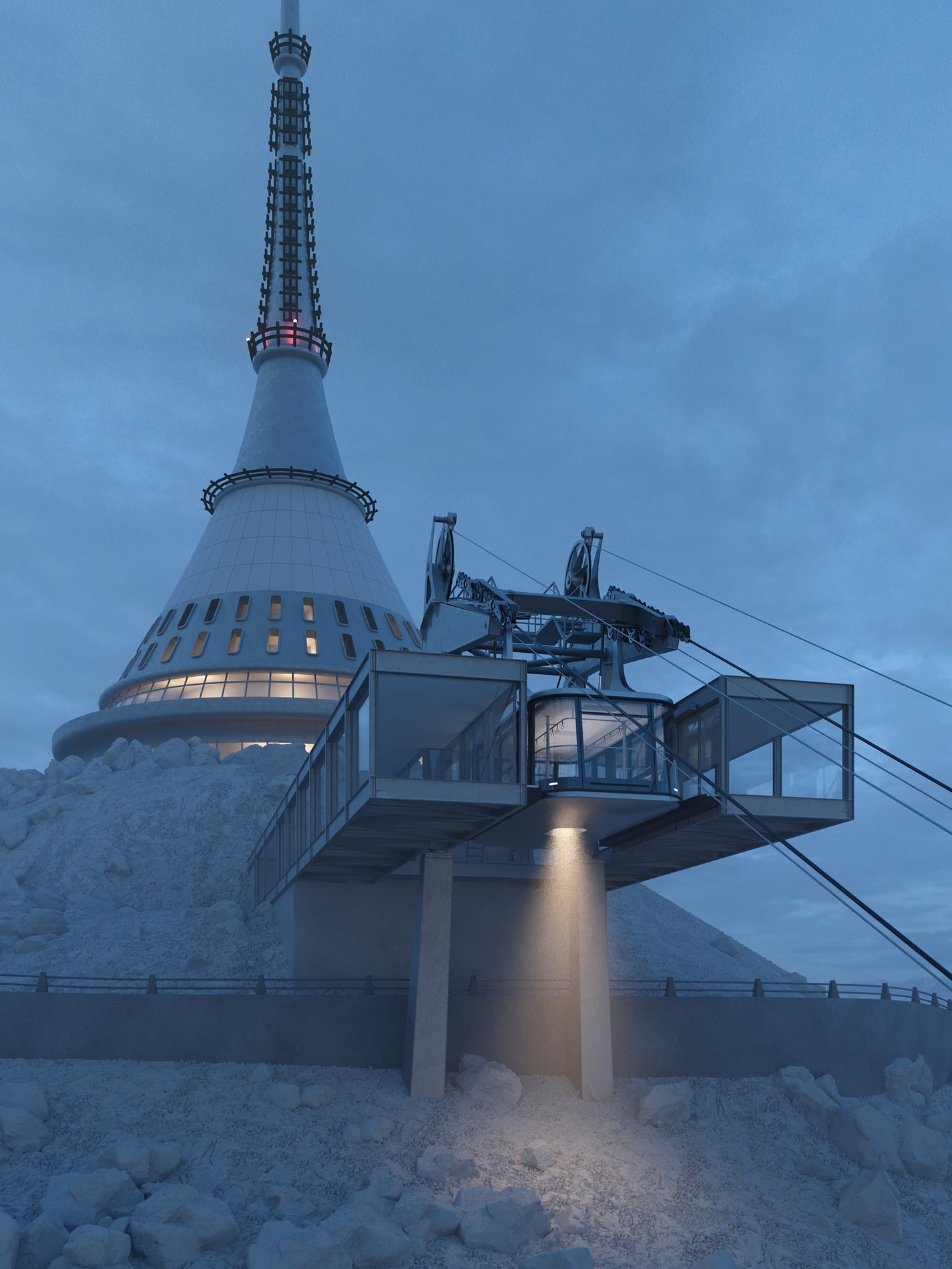 Our primary point of reference was the iconic architecture of the Ještěd Hotel and Television Tower, whose timelessness and powerful silhouette rank among the most important symbols of Czech modern architecture. The dialogue between technology, landscape, and architecture was therefore central to our approach. The cabin design builds upon this landmark and further develops its principles through a contemporary, minimalist, and technologically advanced solution.