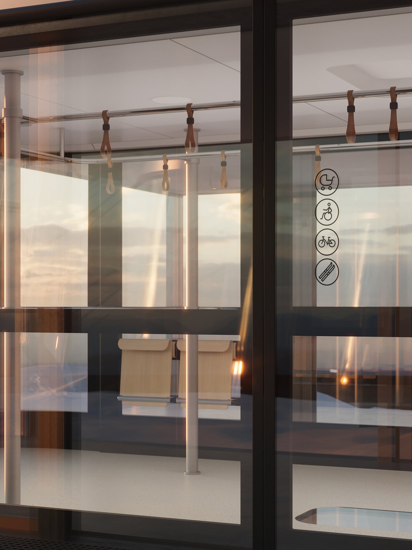 The first design proposals were presented to the City of Liberec and the public at the end of 2024. Subsequently, two variants were evaluated, differing in specific design details. The selected variant, characterized by an organic, wave-like line of the floor and roof, was further refined into its final form, including an outline of the relationship between the cabin and the upper station. The final design thus combines technical rationality with a distinctive yet cultivated expression.